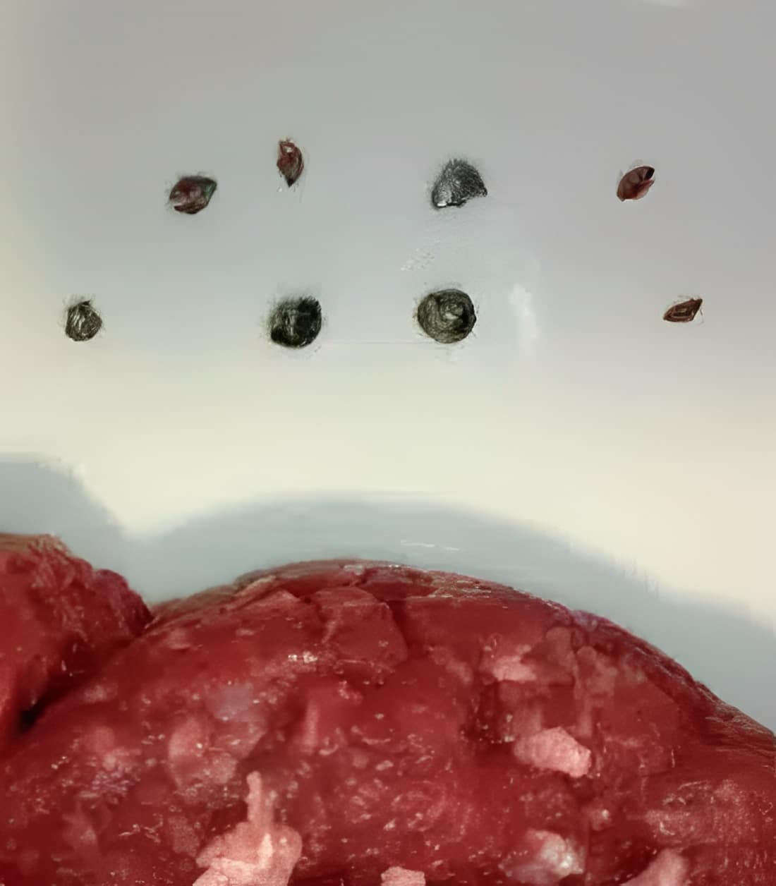 Σύμφωνα με το paidis.com, η γυναίκα υποστηρίζει ότι αρχικά ο γιος της βρήκε τα σκάγια μέσα στα μπιφτέκια που του είχε φτιάξει και στη συνέχεια τα εντόπισε και η ίδια στο κομμάτι του κιμά που δεν είχε χρησιμοποιήσει, όπως μπορείτε να δείτε και στην παρακάτω φωτογραφία.