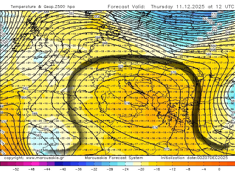 Στην ανάρτησή του, ο μετεωρολόγος συνοδεύει την ανάλυση με χάρτη από το προγνωστικό σύστημα, όπου αποτυπώνεται ο τύπος ατμοσφαιρικού εμποδισμού που αναμένεται να επηρεάσει τη χώρα.