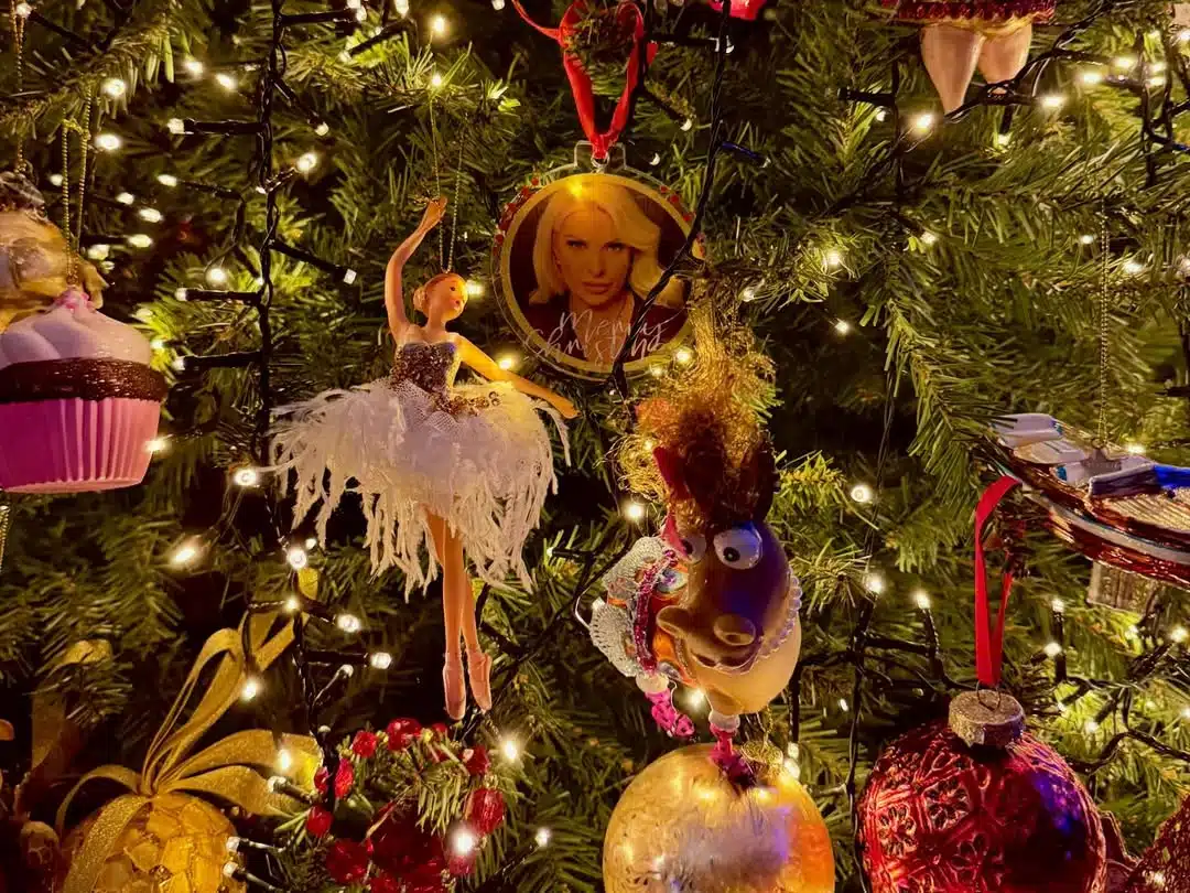 Η παρουσιάστρια πόζαρε μπροστά στο χριστουγεννιάτικο δέντρο στο σπίτι της και μοιράστηκε στιγμιότυπα με τους ακόλουθούς της στο Instagram. Ανάμεσα στα στολίδια ξεχώριζε ένα με τη δική της φωτογραφία πάνω σε αυτό.