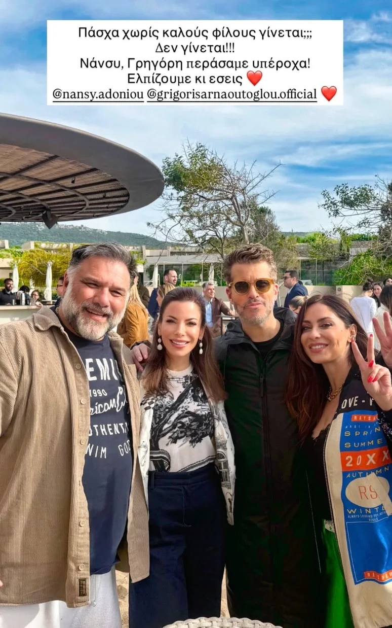 «Πάσχα χωρίς καλούς φίλους γίνεται; Δεν γίνεται! Νάνσυ, Γρηγόρη περάσαμε υπέροχα, ελπίζουμε κι εσείς», έγραψε η Αντελίνα Βαρθακούρη στην ανάρτησή της.