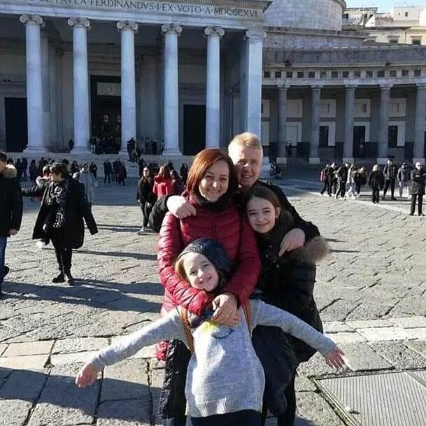 Η Αντονέλα Ντι Ιέλσι, 50 ετών,απεικονίζεται μαζί με τον σύζυγό της Τζιάνι και τις δύο κόρες τους (η Σάρα στο κέντρο).