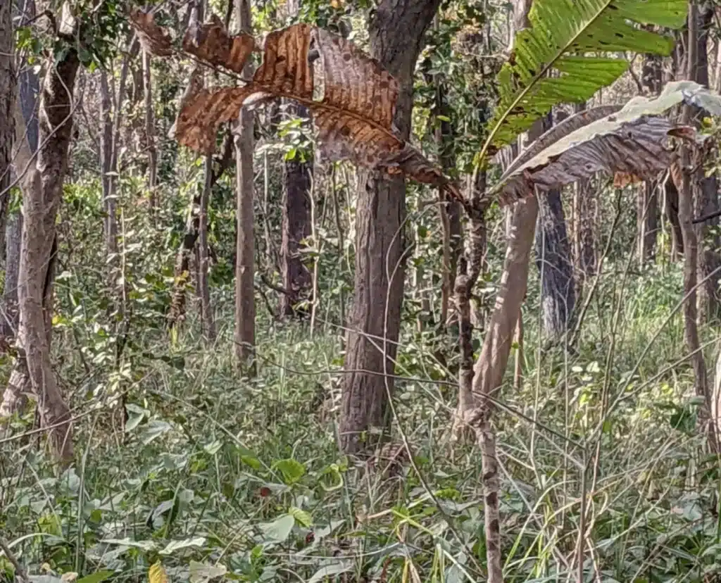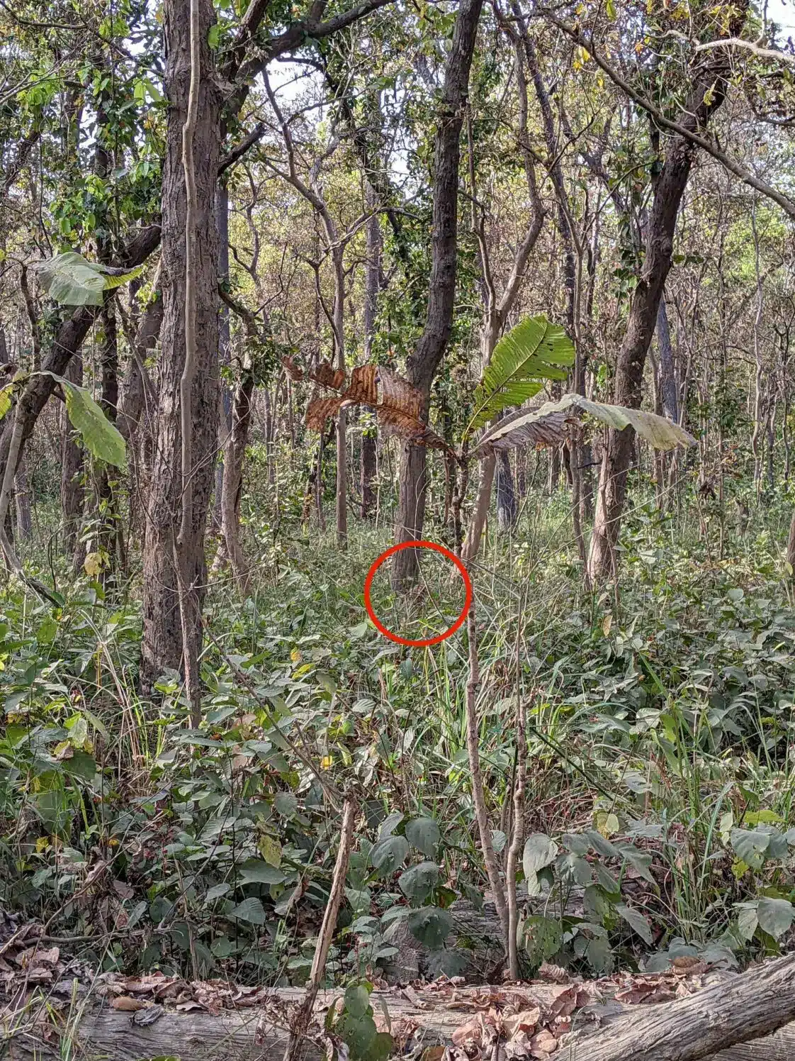 Αν κοιτάξετε κάτω από το δέντρο στο κέντρο, μπορεί να δείτε το ζώο να παραμονεύει ανάμεσα στα φύλλα.