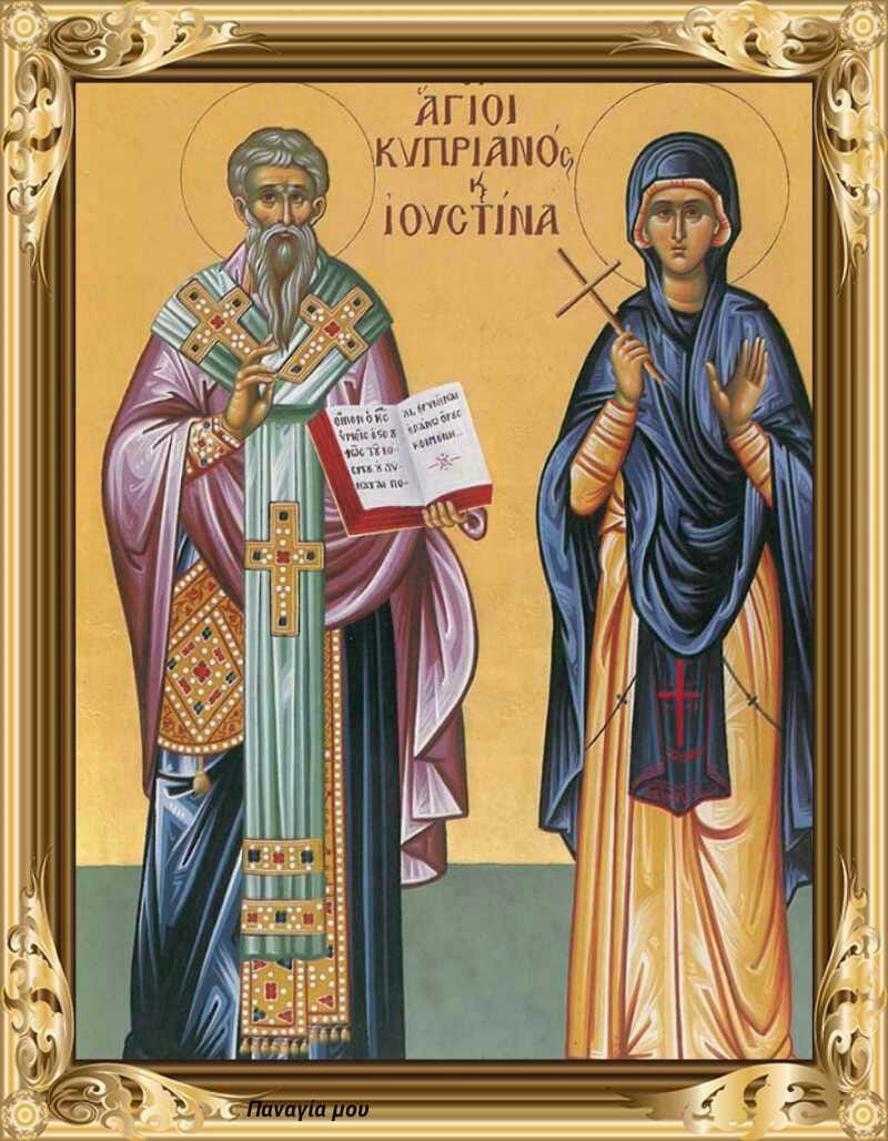 Αύριο, 2 Οκτωβρίου σύμφωνα με το εορτολόγιο τιμάται η μνήμη των Αγίων Κυπριανού επισκόπου Καρθαγένης και Ιουστίνης της παρθένου.