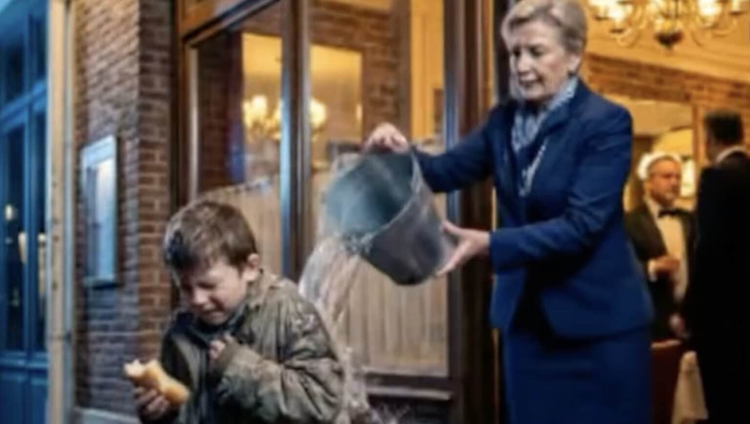 «Φύγε από εδώ!» ούρλιαξε η ιδιοκτήτρια του πολυτελούς γαλλικού εστιατορίου «Ο μαύρος αστακός», η Κατερίνα Λυμπέρη, καταβρέχοντας με παγωμένο νερό το άστεγο αγόρι που στεκόταν μπροστά στην είσοδο.