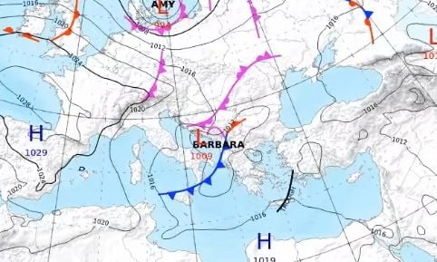 Όπως εξηγεί ο μετεωρολόγος Γιώργος Τσατραφύλλιας, το βαρομετρικό χαμηλό με την κωδική ονομασία “Barbara”, που σχηματίστηκε στον Κόλπο της Γένοβας, θα επηρεάσει πρώτα τη δυτική Ελλάδα και τα Χανιά, και στη συνέχεια τη Μακεδονία, τη Θράκη και τα νησιά του Βορείου Αιγαίου.