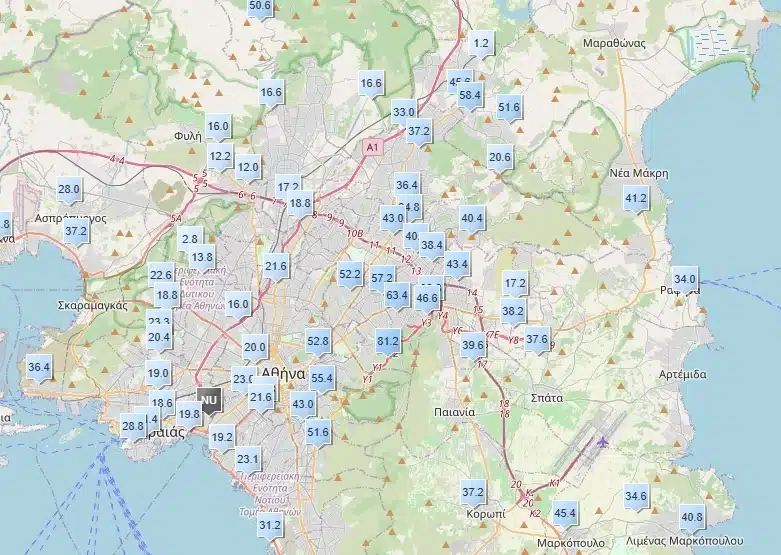 Πιο συγκεκριμένα, έως τις 16:20 η περιοχή του Παπάγου έχει καταγράψει περισσότερα από 80 χιλιοστά βροχής, το Χαλάνδρι σχεδόν 60 και η Ηλιούπολη 51 χιλιοστά. Την ίδια ώρα στο Γκάζι ο μετεωρολογικός σταθμός έχει καταγράψει 20 χιλιοστά βροχής από τα μεσάνυχτα, ενώ στην ευρύτερη περιοχή του Πειραιά έχουν πέσει περίπου 20-30 χιλιοστά βροχής.