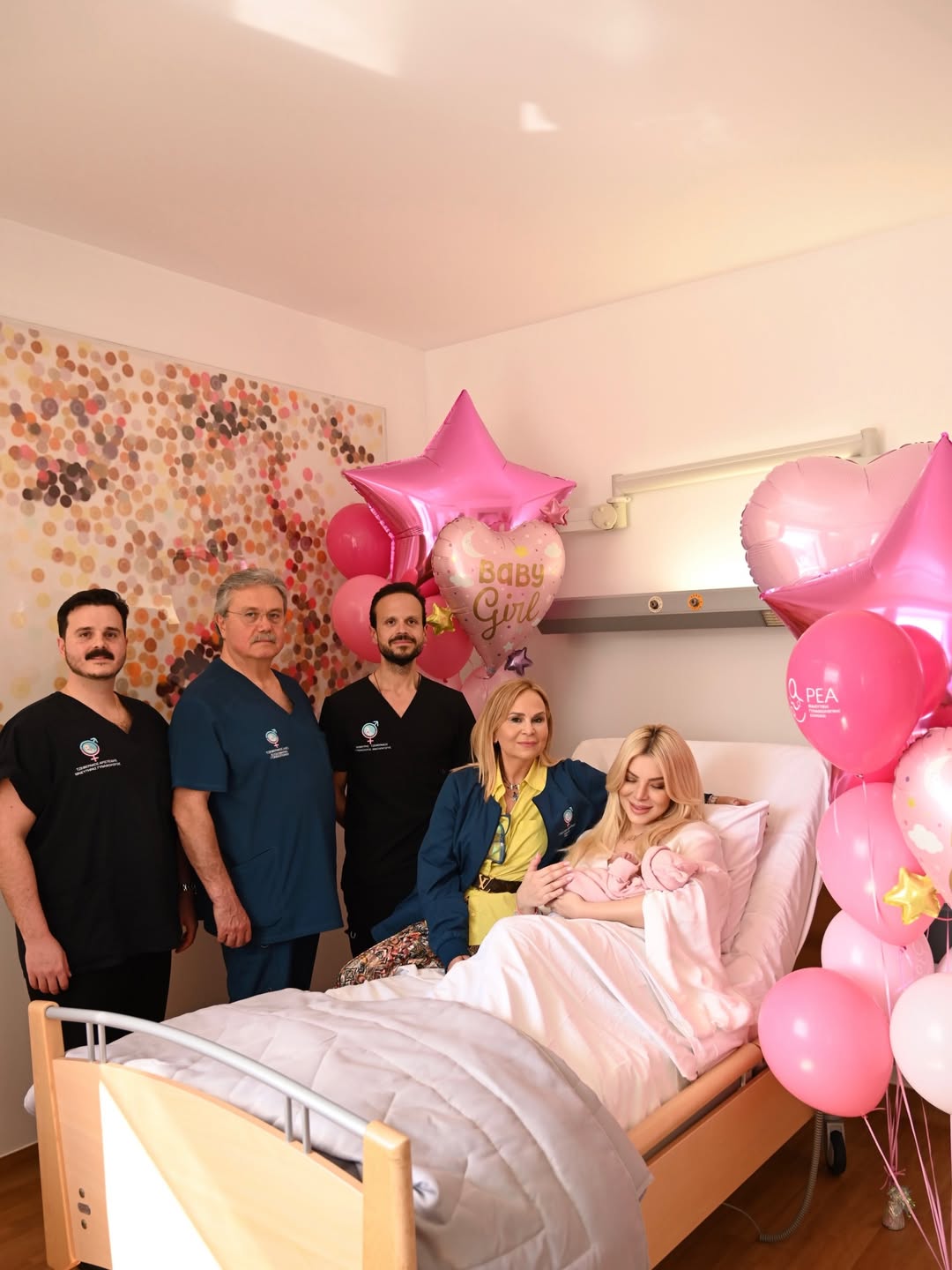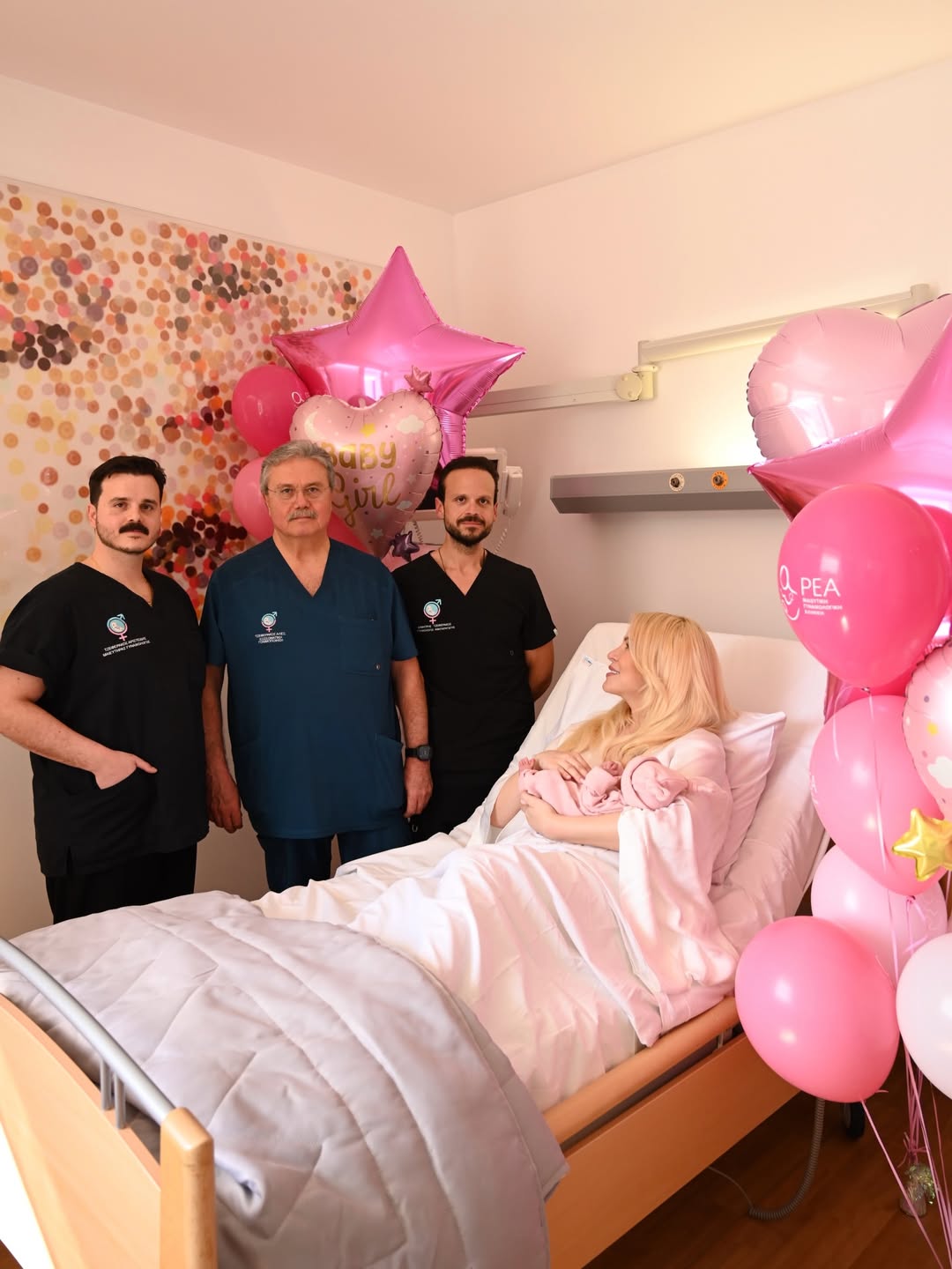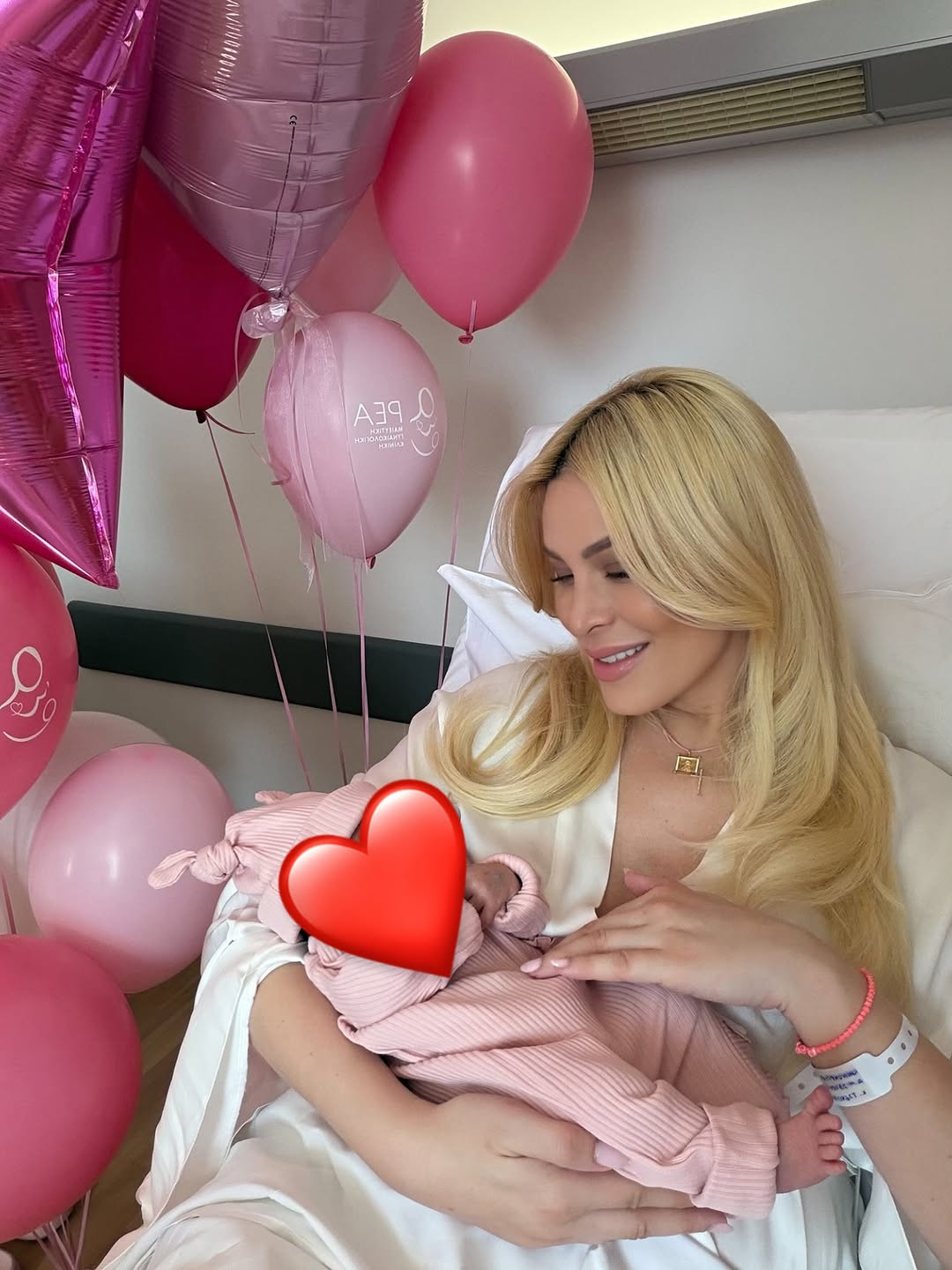 Στις εικόνες που δημοσίευσε, το δωμάτιο στο μαιευτήριο είναι γεμάτο ροζ μπαλόνια και διακοσμητικά, δημιουργώντας ένα σκηνικό γιορτής για τον ερχομό της μικρής Πολυξένης-Αλεξάνδρας. Δίπλα της βρίσκεται και ο σύντροφός της, Παναγιώτης Κουτσουμπής, με τον οποίο μοιράζεται αυτές τις πρώτες, μοναδικές στιγμές ως μαμά και μπαμπάς πλέον.