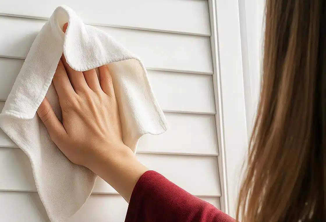 Αφού το κάνετε αυτό, πάρτε τη λεκάνη με το νερό, το ξίδι και το απορρυπαντικό πιάτων με ένα βετέξ. Βουτήξτε αρχικά το βετέξ στο μείγμα και καθαρίστε στην συνέχεια τα παντζούρια σας. Τέλος, σκουπίστε τα με μια καθαρή πετσέτα.