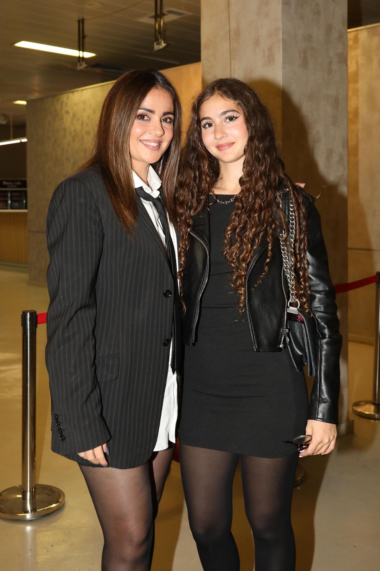 Η 16χρονη κόρη της, Λυδία Παπαγιάννη, υιοθέτησε ένα πιο νεανικό και edgy στιλ, με ένα στενό μαύρο μίνι φόρεμα που αναδεικνύει τη σιλουέτα της. Το μαύρο δερμάτινο μπουφάν προσθέτει μια ροκ πινελιά, ενώ η τσάντα με αλυσίδα και τα κυματιστά μακριά μαλλιά ολοκληρώνουν την εικόνα μιας σύγχρονης κοπέλας. Το outfit της ολοκληρώθηκε εντυπωσιακά με μποτάκια σε zebra print, που έδωσαν έντονο μοτίβο και ζωντάνια στο μαύρο σύνολο.