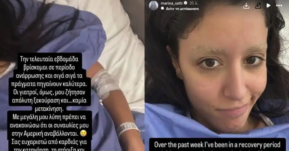 Το απόγευμα της Παρασκευής 28 Νοεμβρίου η Μαρίνα Σάττι έκανε την πρώτη της ανάρτηση μέσα από το νοσοκομείο, θέλοντας να ευχαριστήσει τους θαυμαστές της για τα μηνύματα που της στέλνουν.