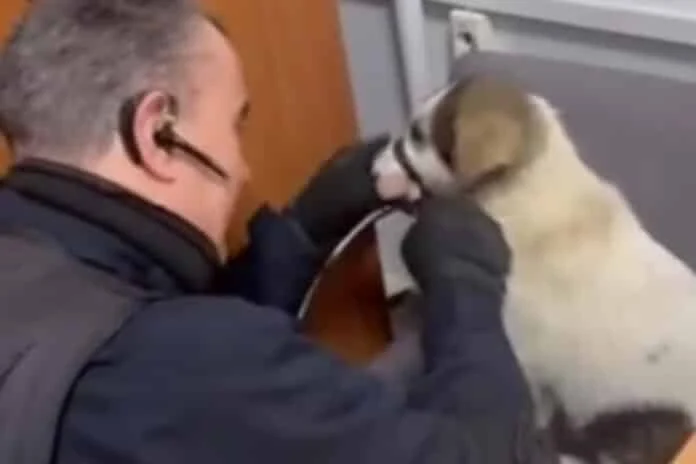 Πήραν αγκαλιά το σκυλάκι, το έβαλαν στο περιπολικό και το μετέφεραν στο αστυνομικό τμήμα.