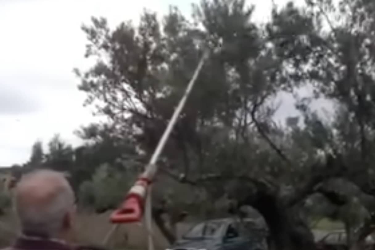 Ο συγκεκριμένος αγρότης από τα Κύθηρα, αξιοποιώντας καθημερινά υλικά και λίγη φαντασία, δημιούργησε μια απλή αλλά πανέξυπνη πατέντα που κάνει το μάζεμα της ελιάς παιχνιδάκι.