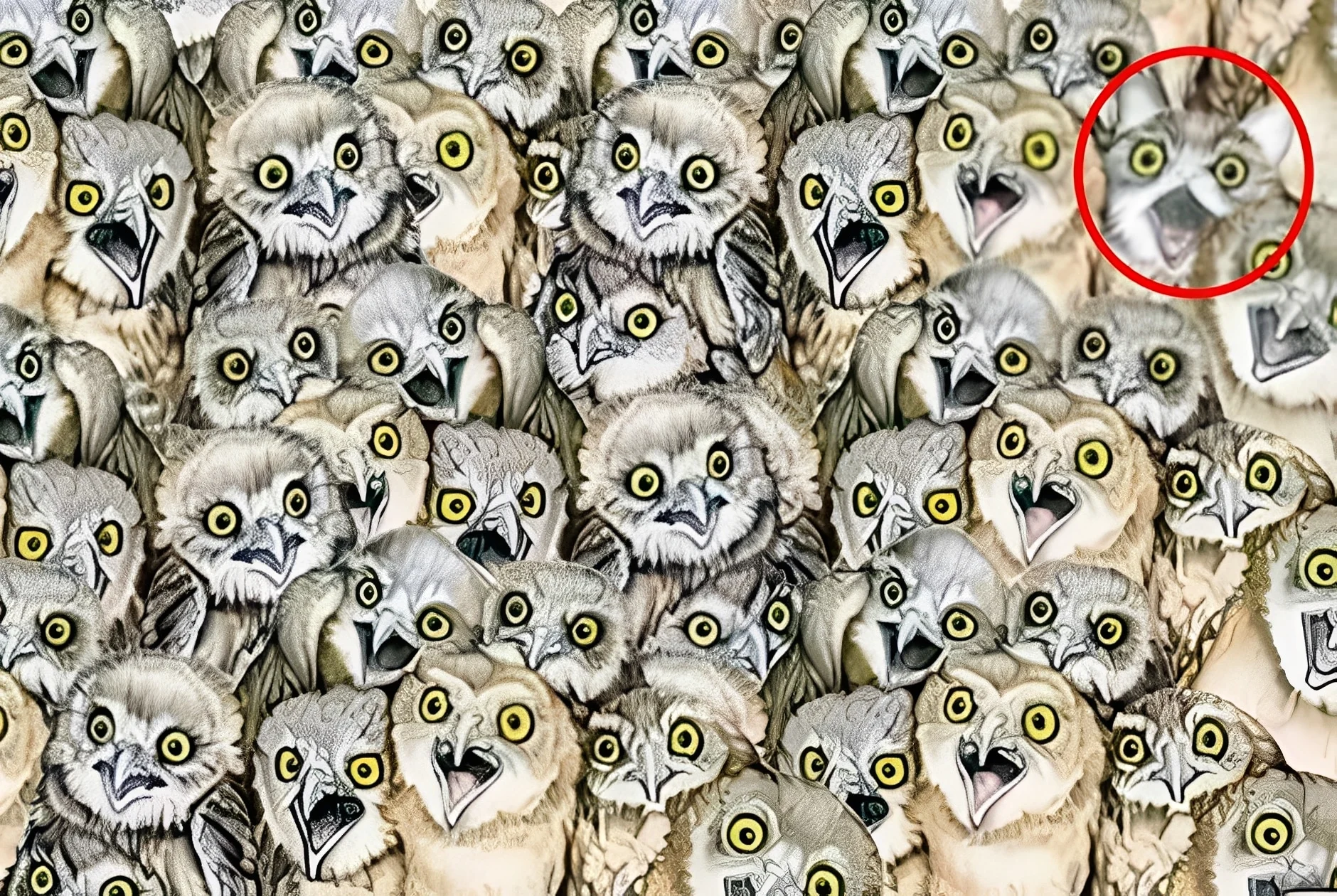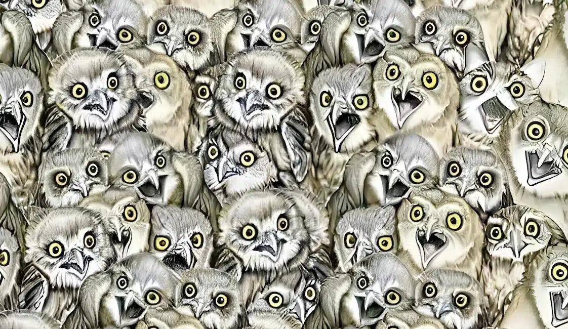 Με μια πρώτη ματιά, η εικόνα δείχνει μια συλλογή από κουκουβάγιες. Υπάρχει όμως μια ανατροπή: μια γάτα είναι κρυμμένη με έξυπνο τρόπο μέσα στην εικονογράφηση. Μπορείς να τη βρεις;