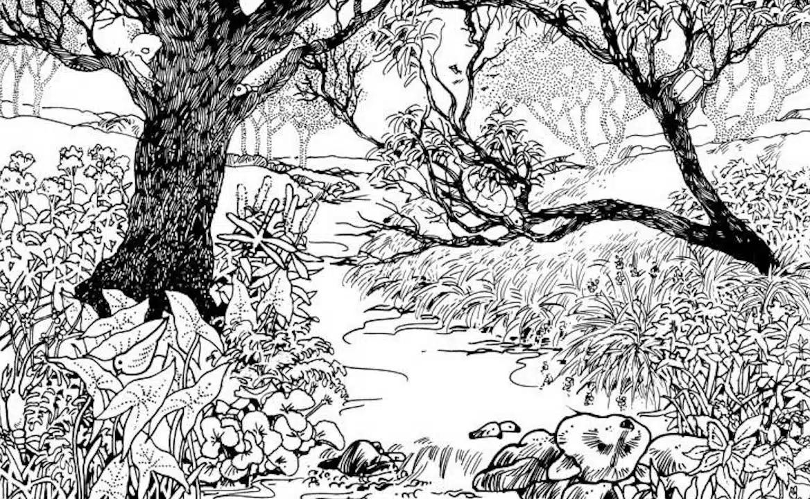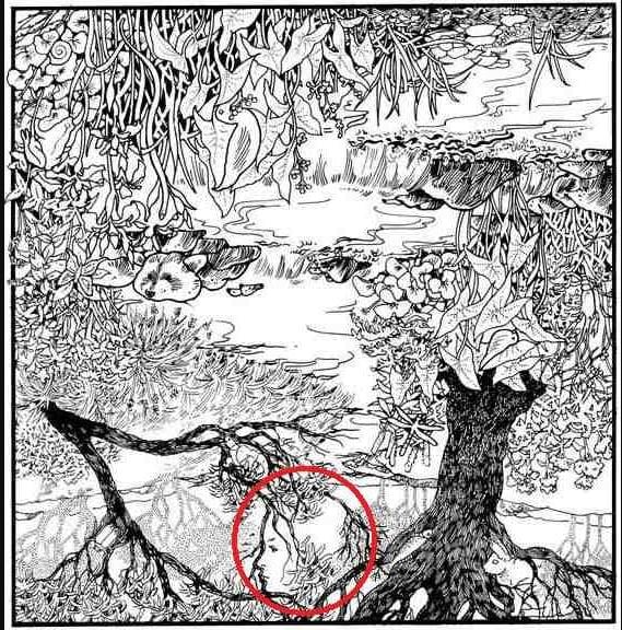 Η ψευδαίσθηση προκαλεί τους θεατές να βρουν το πρόσωπο ενός κοριτσιού. Αυτή η εικόνα είναι ένα δύσκολο παζλ όπου πρέπει να εντοπίσετε το πρόσωπο μέσα στο σκίτσο ενός δάσους όπου υπάρχουν επίσης πολλά ζώα όπως ένα κουνέλι, μια χελώνα, ένα ψάρι, ένα ρακούν κ.λπ.