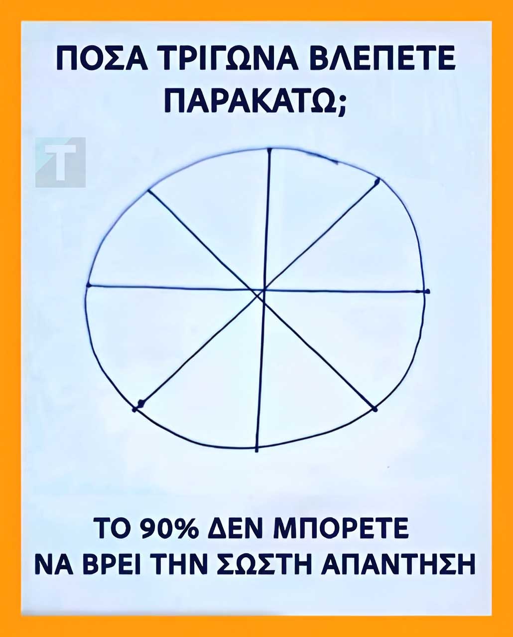 Οι περισσότεροι άνθρωποι μετρούν αμέσως 8 φέτες και δηλώνουν με σιγουριά «8 τρίγωνα!»