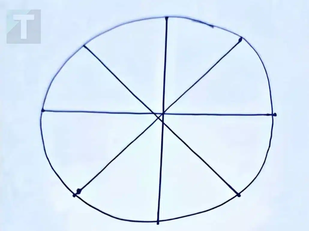 Ο κύκλος διαιρείται με 4 ευθείες γραμμές που τέμνονται στο κέντρο. Αυτές οι γραμμές δημιουργούν 8 τμήματα, το καθένα σε σχήμα τριγώνου.