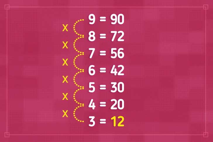 Για να βρείτε την σωστή απάντηση πρέπει να καταλάβετε ποια είναι η σύνδεση που έχουν μεταξύ τους οι αριθμοί. Αν παρατηρήσετε προσεκτικά, θα διαπιστώσετε ότι οι αριθμοί στα δεξιά προκύπτουν από τον πολλαπλασιασμό του αριθμού στα αριστερά με τον αμέσως επόμενο του.