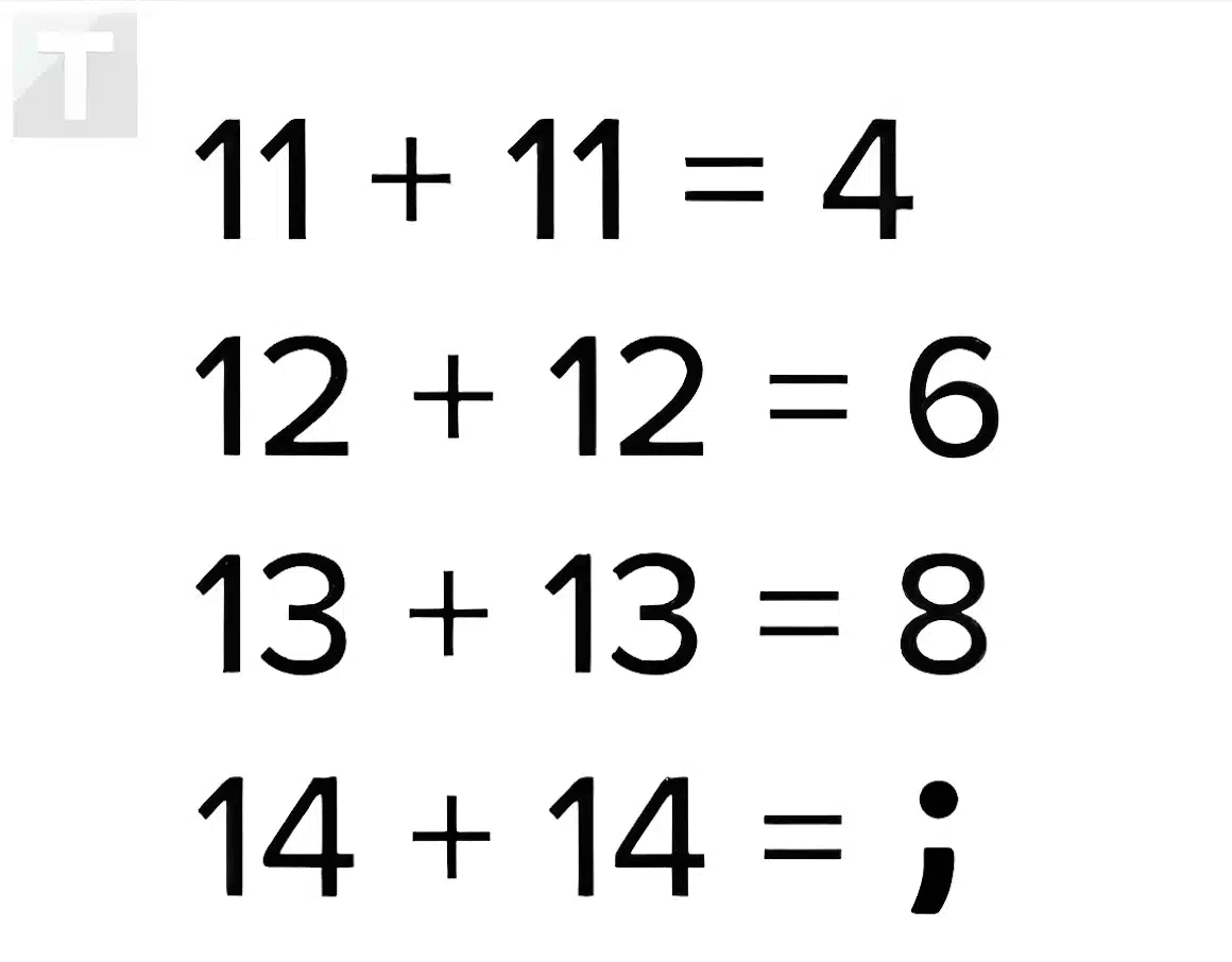 Το 11 + 11 = 4 μεταφράζεται σε (1+1) + (1+1) = 4. Ομοίως το 12 + 12 = 6 γίνεται (1+2) + (1+2) = 6, και το 13 + 13 = 6 γίνεται (1+3) + (1+3) = 8.