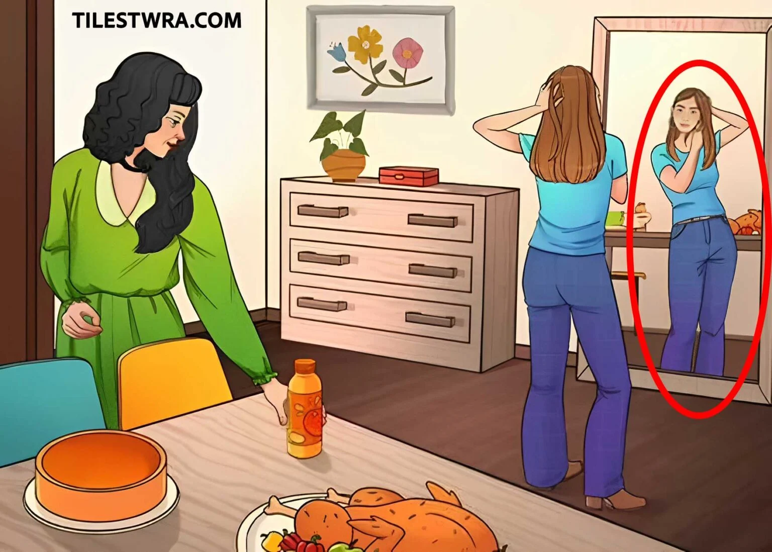 Στην εικόνα με την τραπεζαρία βλέπουμε δύο κοπέλες. Η μια στρώνει το τραπέζι ενώ η κοιτάζει σε έναν καθρέφτη. Που είναι το λάθος;