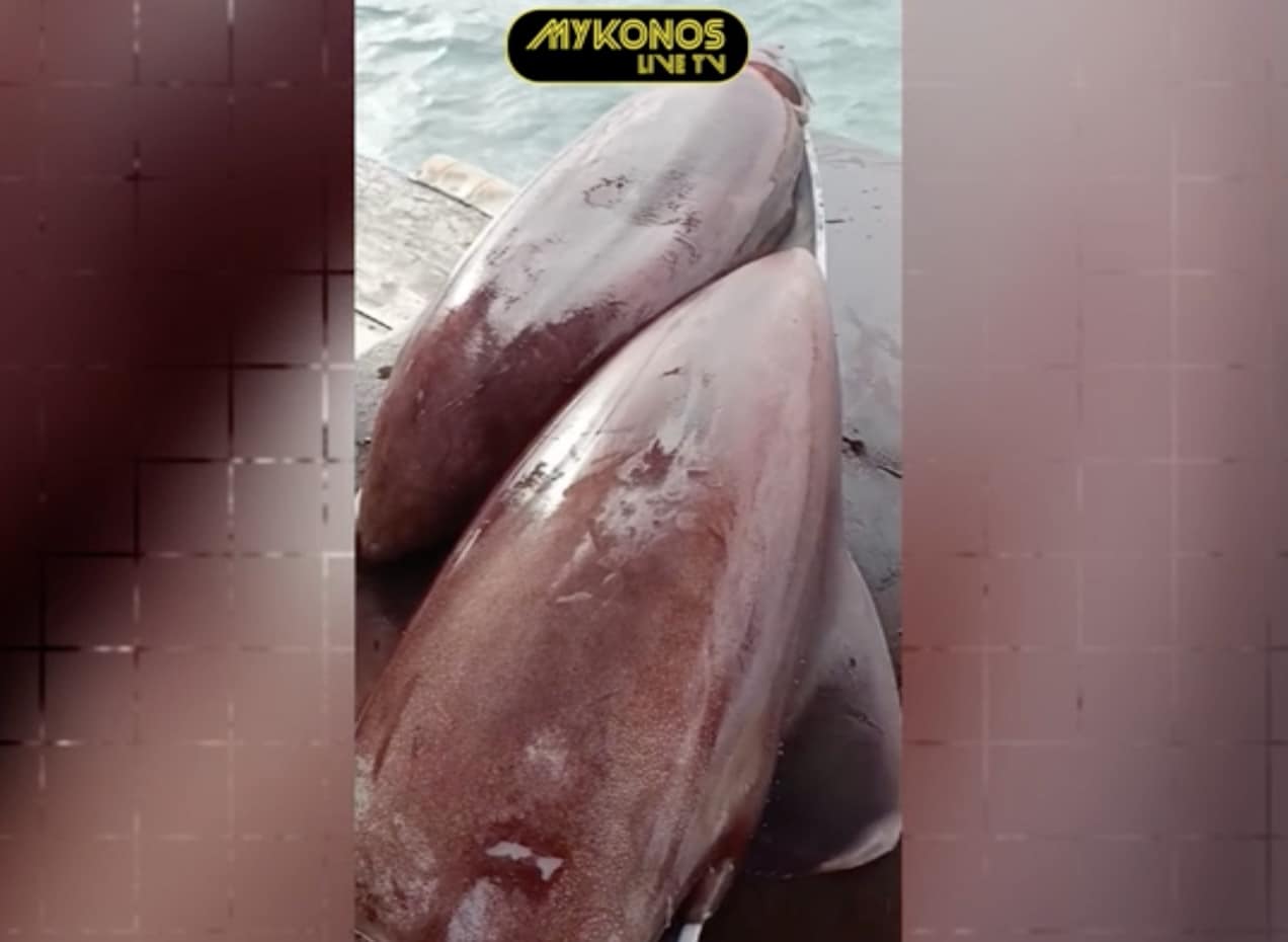 Πρόκειται για δύο καλαμάρια μήκους ενός μέτρου το καθένα και όπως είναι φυσικό προκάλεσε την έκπληξη όλων στη Μύκονο.