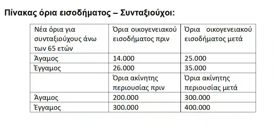 – Αυξάνεται, παράλληλα, σε 300 ευρώ καθαρά η ενίσχυση των χαμηλοσυνταξιούχων, ανασφάλιστων υπερηλίκων και ατόμων με αναπηρία που καταβάλλεται κάθε Νοέμβριο σε βάση μόνιμη και ετήσια. Ενώ διευρύνεται η περίμετρός της, καλύπτοντας πλέον 1,9 εκατομμύρια δικαιούχους, δηλαδή το 85% των συνταξιούχων άνω των 65 ετών.