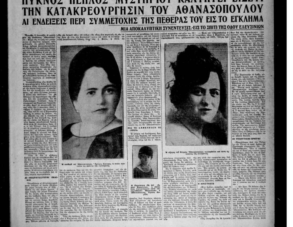 Η…οικογενειακή ιστορία δεν σταματάει εδώ, καθώς ο εραστής της πεθεράς πρότεινε τον διαμελισμό του πτώματος και τη ρίψη του στο ρέμα του Κηφισού. Όταν ανακαλύφθηκε ό,τι είχε απομείνει από τον Αθανασόπουλο, η αστυνομία ανέλαβε δράση, συλλαμβάνοντας όλους τους δράστες.