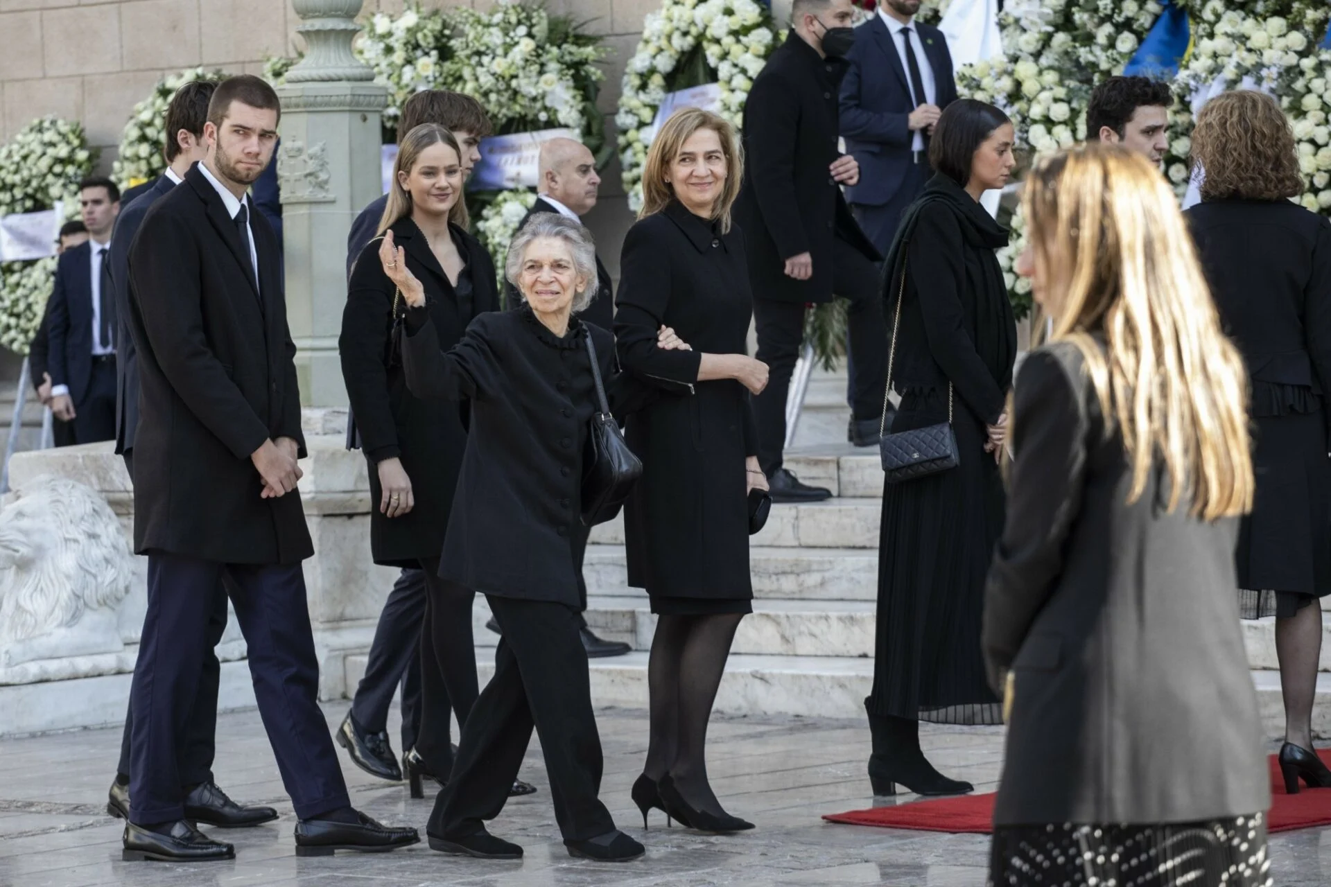 Κρατώντας απ’ το χέρι την ανιψιά της Κριστίνα της Ισπανίας στην κηδεία του αδερφού της τέως Βασιλιά Κωνσταντίνου στην Μητρόπολη της Αθήνας, 2022