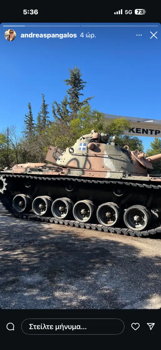 Σε ακόμα μία φωτογραφία που τράβηξε ο Ανδρέας Πάγκαλος, φαίνεται ένα τανκ στο Κέντρο Εκπαίδευσης Τεθωρακισμένων Αυλώνα, όπου βρίσκεται εκεί από την Τρίτη. Σύμφωνα με αποκλειστικές πληροφορίες του parapolitika.gr, ο 25χρονος φαντάρος, μετά την εκπαίδευση, θα μεταφερθεί στη Στρατιωτική Σχολή Ευελπίδων. Η πληροφορία βέβαια μεταφέρεται με κάθε επιφύλαξη, καθώς επίσημα δεν έχουν ανακοινωθεί οι μεταθέσεις από το Υπουργείο Άμυνας.