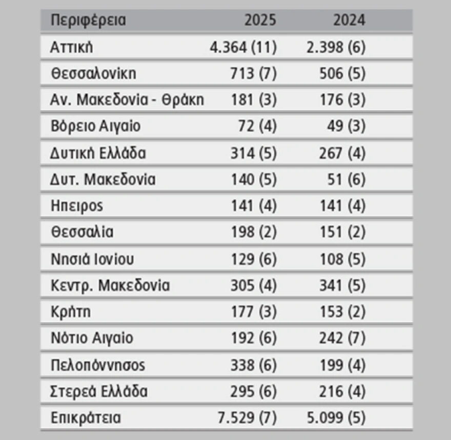 Η μεγαλύτερη αύξηση καταγράφηκε στην Αττική.