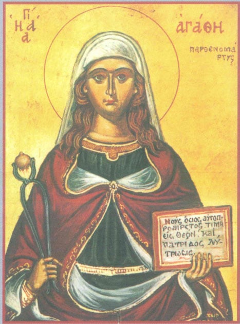 Σήμερα, Πέμπτη, 5 Φεβρουαρίου, σύμφωνα με το εορτολόγιο τιμάται η μνήμη της Αγίας Αγάθης της μάρτυρος.