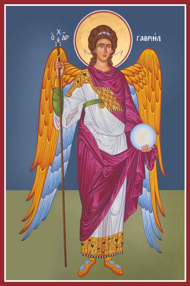 Ο Αρχάγγελος Γαβριήλ, όνομα που σημαίνει ο Θεός είναι η ισχύς μου, είναι ο κατ΄εξοχήν αγγελιαφόρος των γεγονότων που έχουν σχέση με την ενανθρώπηση του Κυρίου και για το λόγο αυτό συναντάται περισσότερο στην Καινή Διαθήκη. Αυτός ανήγγειλε τη γέννηση του Βαπτιστή Ιωάννη στον πατέρα του Ζαχαρία και αυτός απεστάλη προς την Παρθένο Μαρία για να φέρει τη χαρμόσυνη είδηση της ενανθρώπησης του Υιού του Θεού. Στην ορθόδοξη εικονογραφία της γιορτής παρίσταται με σκήπτρο, και όχι με κρίνο, δείγμα της εξουσίας που έλαβε από τον Θεό να διακονήσει το μέγα μυστήριο της θείας ενανθρωπήσεως. Η όψη του, επίσης, λόγω του χαρμόσυνου χαρακτήρα της αγγελίας, χαρακτηρίζεται από ιλαρότητα, γλυκύτητα και αρμονικότητα. Σύναξη λοιπόν του Αρχαγγέλου Γαβριήλ σήμερα, και ας μην ξεχνούμε ότι αυτή η γιορτή, όπως και όλες οι υπόλοιπες, δεν τελούνται προς όφελος των τιμωμένων προσώπων, αλλά κυρίως αποσκοπούν στο να δώσουν μια ευκαιρία ακόμη στους πιστούς να προσευχηθούν και να αναζητήσουν τη σωτηρία της ψυχής τους μέσα από τη μίμηση των Αγίων Αγγέλων και των Αγίων ανθρώπων.