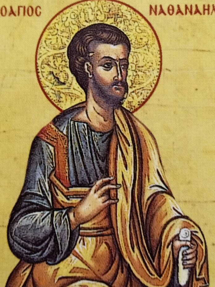 - Άγιος Ναθαναήλ ο Απόστολος: Πρόκειται για έναν από τους Δώδεκα Μαθητές του Χριστού (συχνά ταυτίζεται με τον Βαρθολομαίο). Είναι ο “γνήσιος Ισραηλίτης” για τον οποίο ο Κύριος είπε: “Ίδε αληθώς Ισραηλίτης, εν ω δόλος ουκ έστι”.