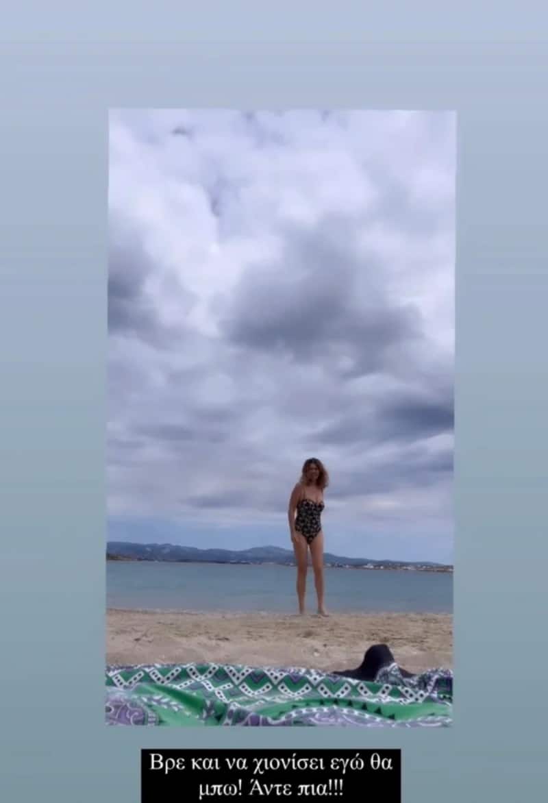 Η παρουσιάστρια επέλεξε ένα ολόσωμο μαγιό με animal print για να κάνει την πρώτη της βουτιά. Ο καιρός μπορεί να μην ήταν ιδιαίτερα σύμμαχος, αφού ήταν συννεφιασμένη η μέρα, ωστόσο, αυτό δεν πτόησε τη Σοφία Αλιμπέρτη.