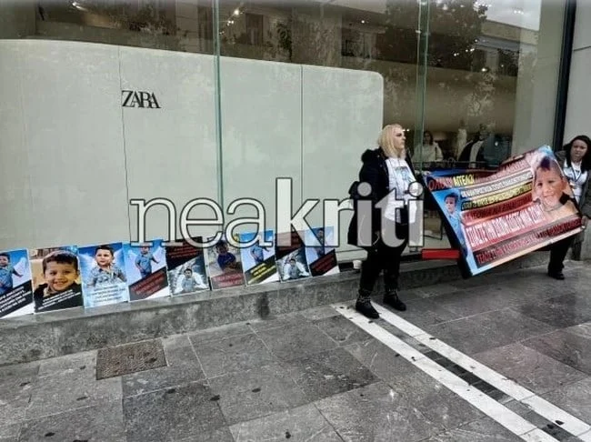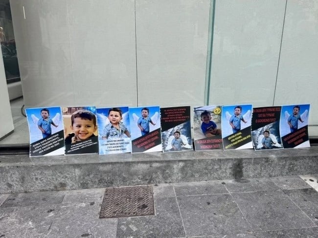 Μέλη του Σωματείου “Άγγελος Προστάτης”, του φορέα που δημιουργήθηκε στη μνήμη του μικρού Άγγελου, με την έναρξη της δίκης άπλωσαν πανό ζητώντας δικαίωση για την ψυχή του 3χρονου παιδιού.