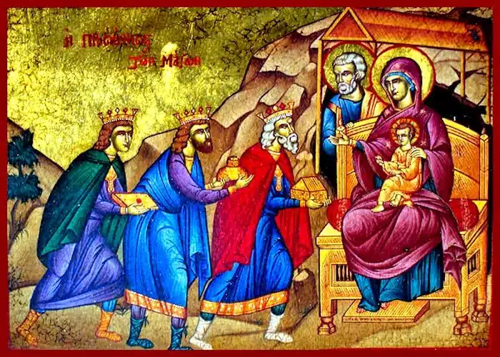 «Το γεγονός της έλευσης των Μάγων, με βάση ευαγγελικά στοιχεία (Μθ 2,16), πρέπει να συνέβη ένα έτος ή και περισσότερο μετά τη γέννηση του Χριστού. Οι μάγοι (από τη σανσκριτική Maha) ήταν σοφοί, ιατροί, μελετητές άστρων, ερμηνευτές ονείρων, ιερείς, εν γένει πεπαιδευμένοι άνδρες της εποχής. Παρακολουθούσαν τις κινήσεις των άστρων και συμπέραναν τη γέννηση κάποιου άρχοντα ή σημαντικού προσώπου. Στην προκειμένη περίπτωση τη γέννηση του Χριστού. Δεν προσδιορίζεται ο τόπος προέλευσής τους. Λέγεται απλά ότι ήρθαν από την Ανατολή.