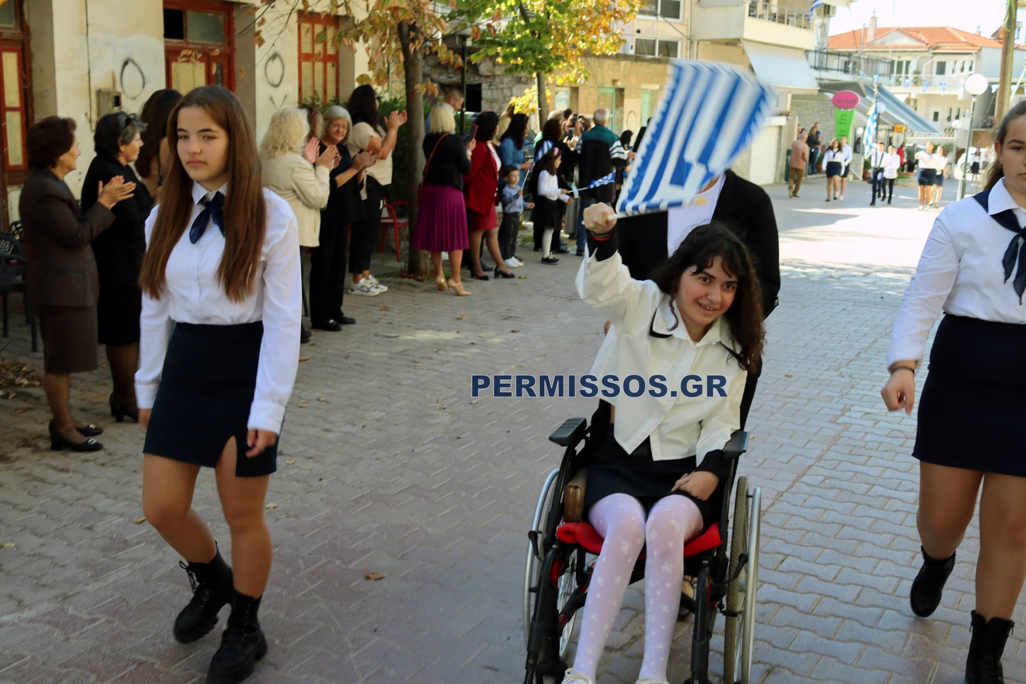 Στις φωτογραφίες που δημοσιεύει το permissos.gr, η μικρή Αλεξία- η οποία φοιτά στην πρώτη Γυμνασίου- , κρατά τη σημαία και με υπερηφάνεια κάνει παρέλαση σε κεντρικό δρόμο της γενέτειράς της.