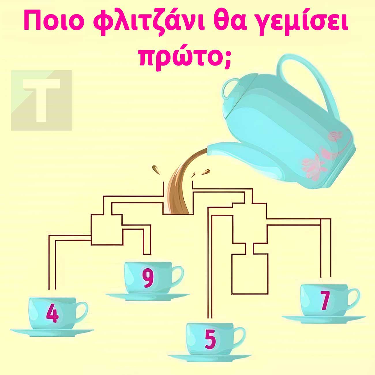 Ένα τεστ IQ ήρθε για να τεστάρει την παρατηρητικότητά σας και την αντίληψή σας. Εσείς μπορείτε να βρείτε ποιο φλιτζάνι θα γεμίσει πρώτο με τσάι σε 5 δευτερόλεπτα;