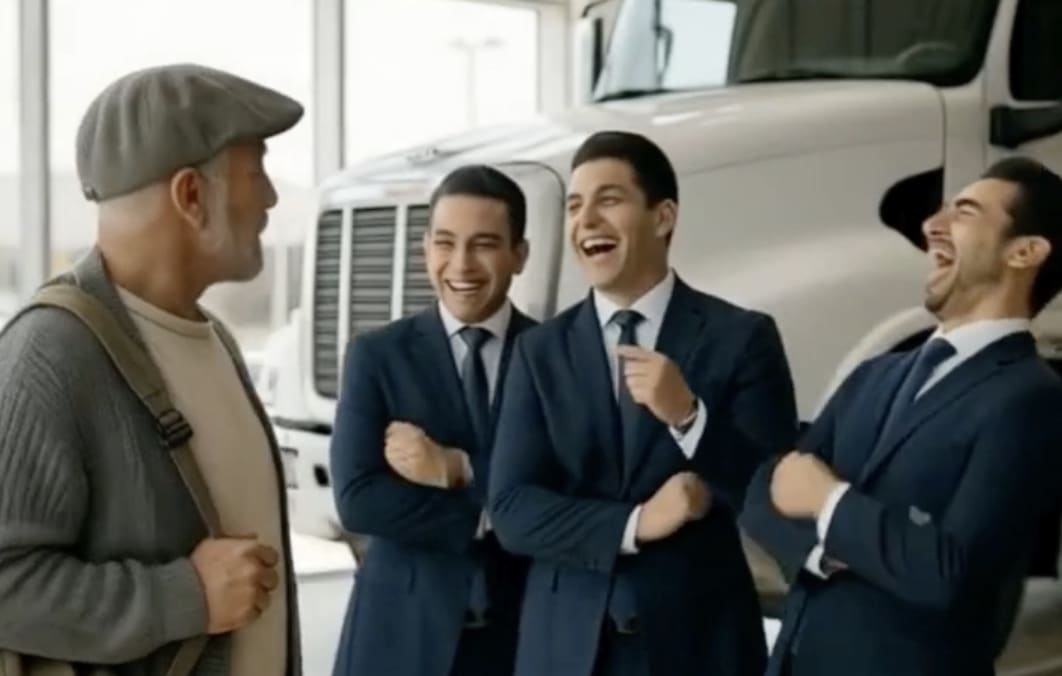 «Ξέρετε γιατί είμαι ντυμένος έτσι; Επειδή το πρωί ήμουν στο συνεργείο, ελέγχοντας τα φορτηγά μου. Ξέρετε γιατί λερώνω ακόμα τα χέρια μου με λάδι, ενώ δεν χρειάζεται; Γιατί δεν έχω ξεχάσει από πού ξεκίνησα. Οδήγησα 40 χρόνια πριν αποκτήσω δική μου εταιρεία. Κοιμήθηκα σε καμπίνες, έφαγα κρύο φαγητό σε πρατήρια, και ποτέ δεν φέρθηκα σε κανέναν όπως μου φερθήκατε σήμερα.»