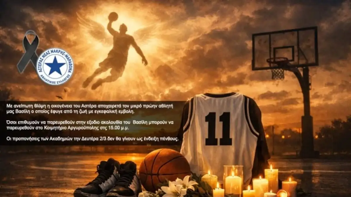Βαρύ το πένθος στη Νέα Μάκρη από την είδηση του ξαφνικού θανάτου του 12χρονου Βασίλη, πρώην αθλητή του Αστέρα.
