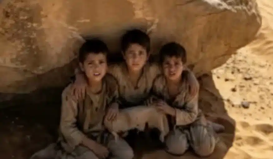 Τα παιδιά στέκονταν ξυπόλυτα πάνω στην άμμο που έκαιγε σαν σίδερο. Το παγούρι άδειασε μέσα σε λίγα λεπτά. Το μικρότερο άρχισε να κλαίει, αδύναμα και βραχνά. Το μεγαλύτερο προσπάθησε να φανεί γενναίο, μάζεψε τα αδέρφια του κοντά του και ψιθύριζε ψέματα για βοήθεια που θα ερχόταν σύντομα.