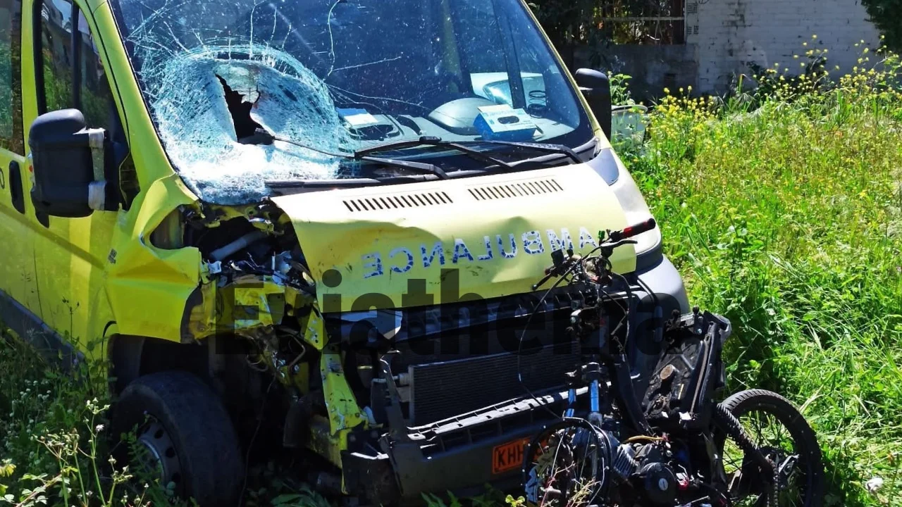 Το τροχαίο σημειώθηκε περίπου στις 23:45 το βράδυ της Παρασκευής, όταν ασθενοφόρο συγκρούστηκε με δίκυκλο όχημα στο Αλιβέρι